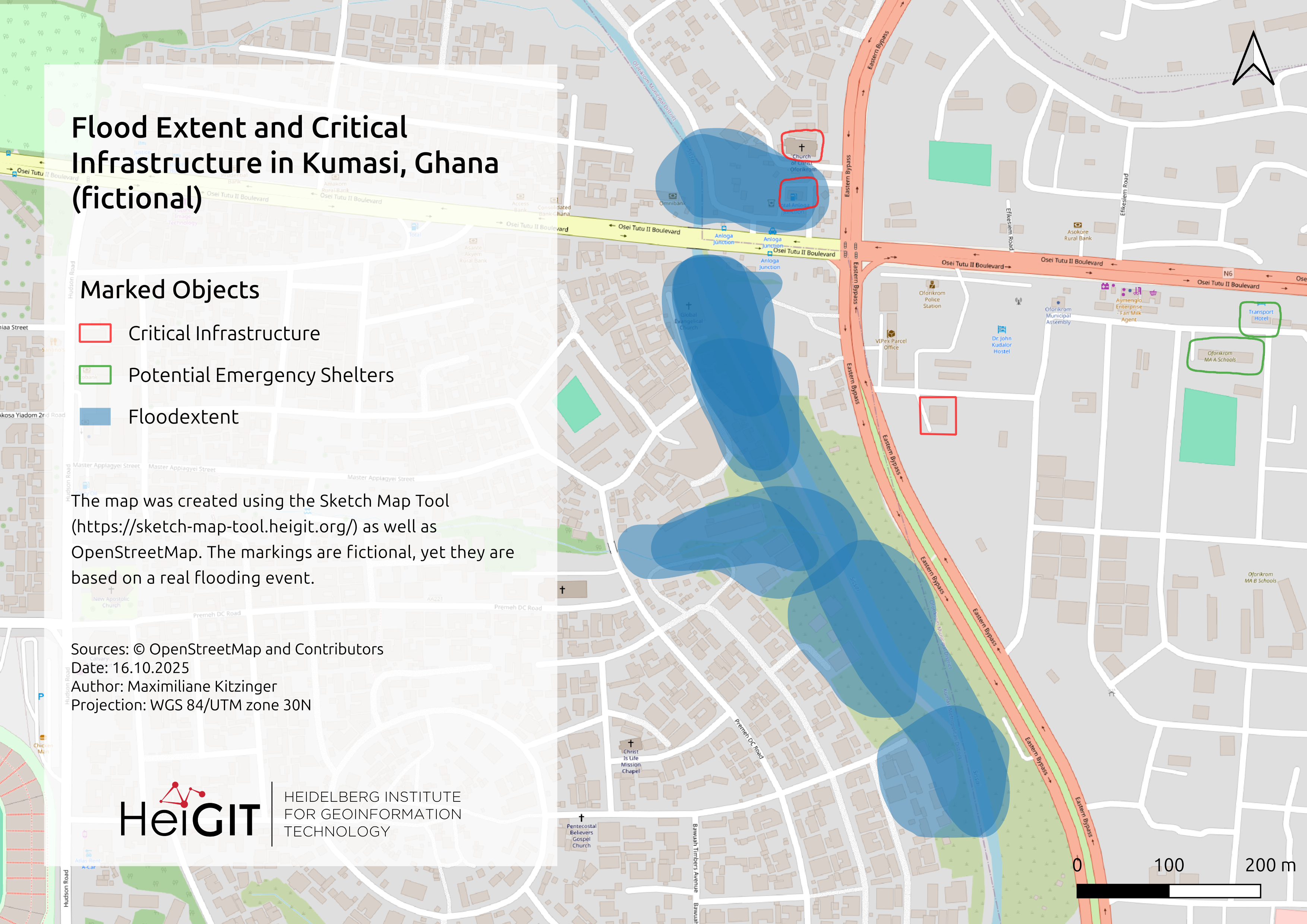 Map the critical infrastructure and historical flood extent using Sketch Maps