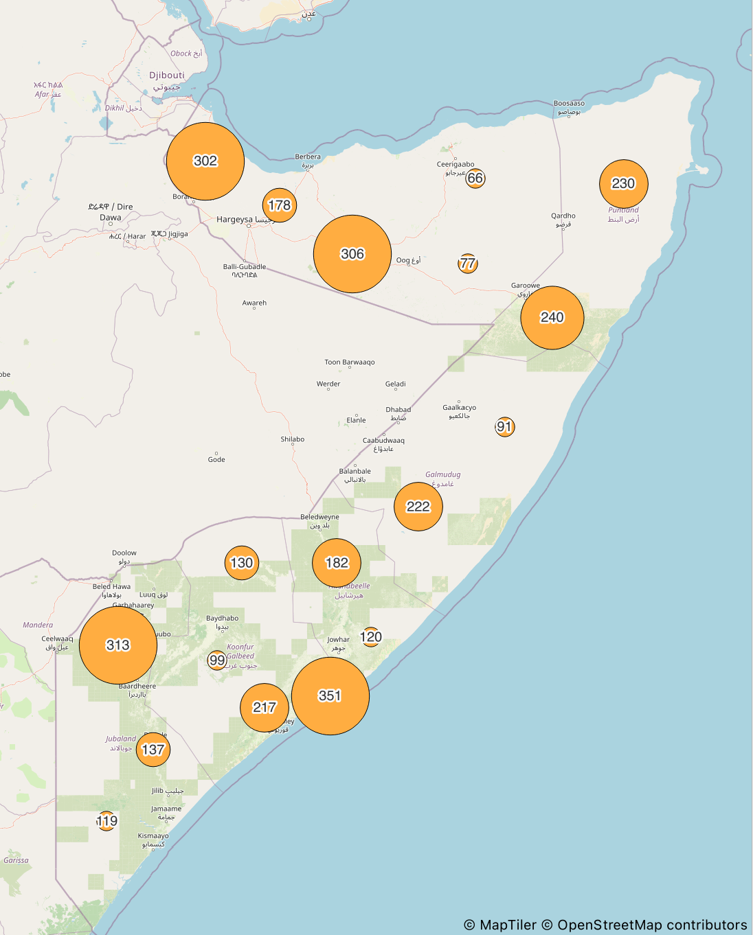 In this tutorial, you will learn how to create a multivariable map to generate an epidemiological overview of a cholera outbreak in Somalia. Using a fictional dataset with weekly infection counts and death rates, you will visualize the situation for a selected week by applying several QGIS visualization tools.
