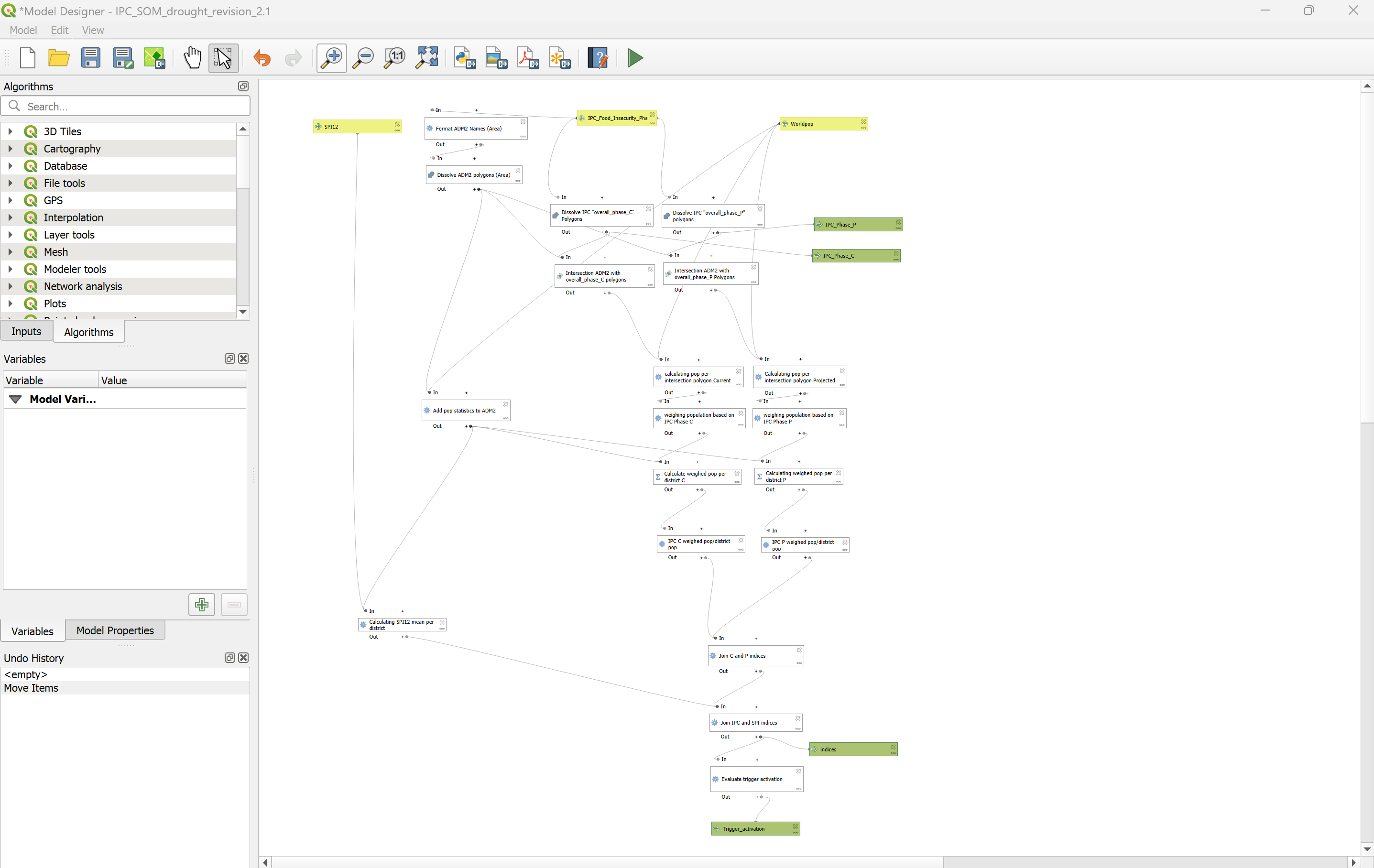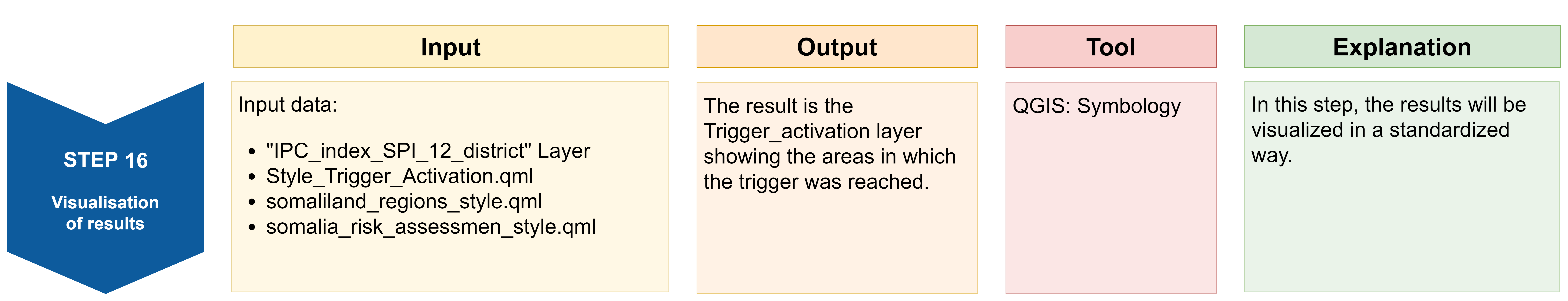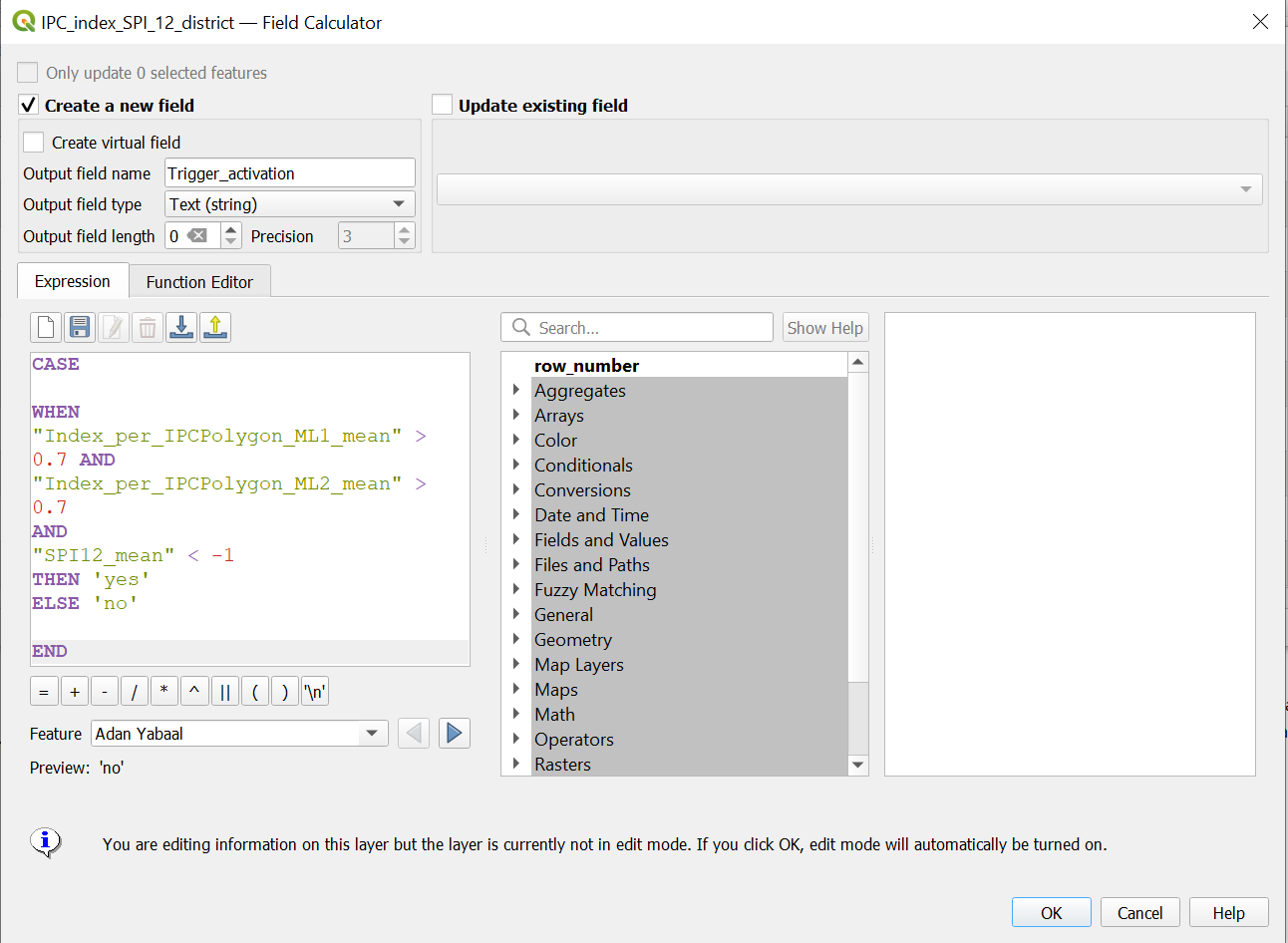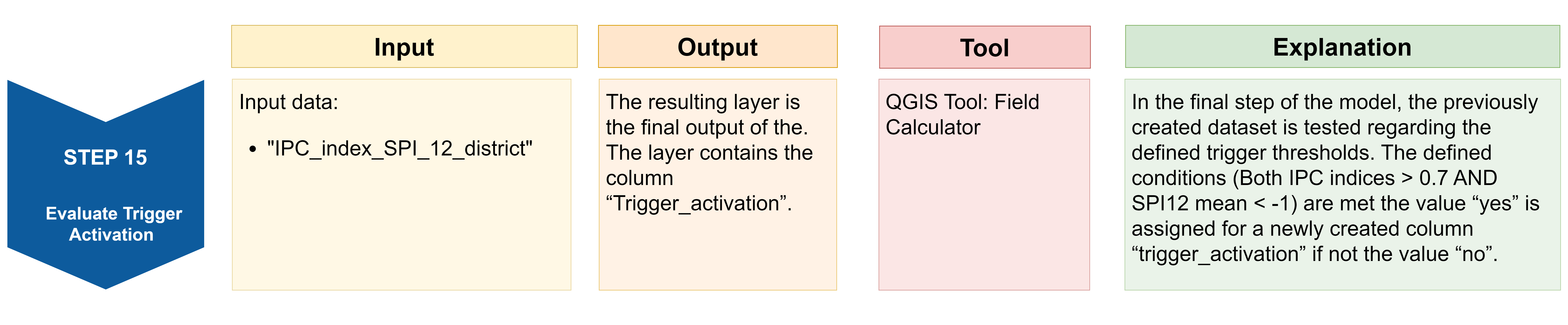 Result: A layer with all districts of Somalia with a column of “Yes” and “No” values indicating whether the trigger levels have been reached or not.
