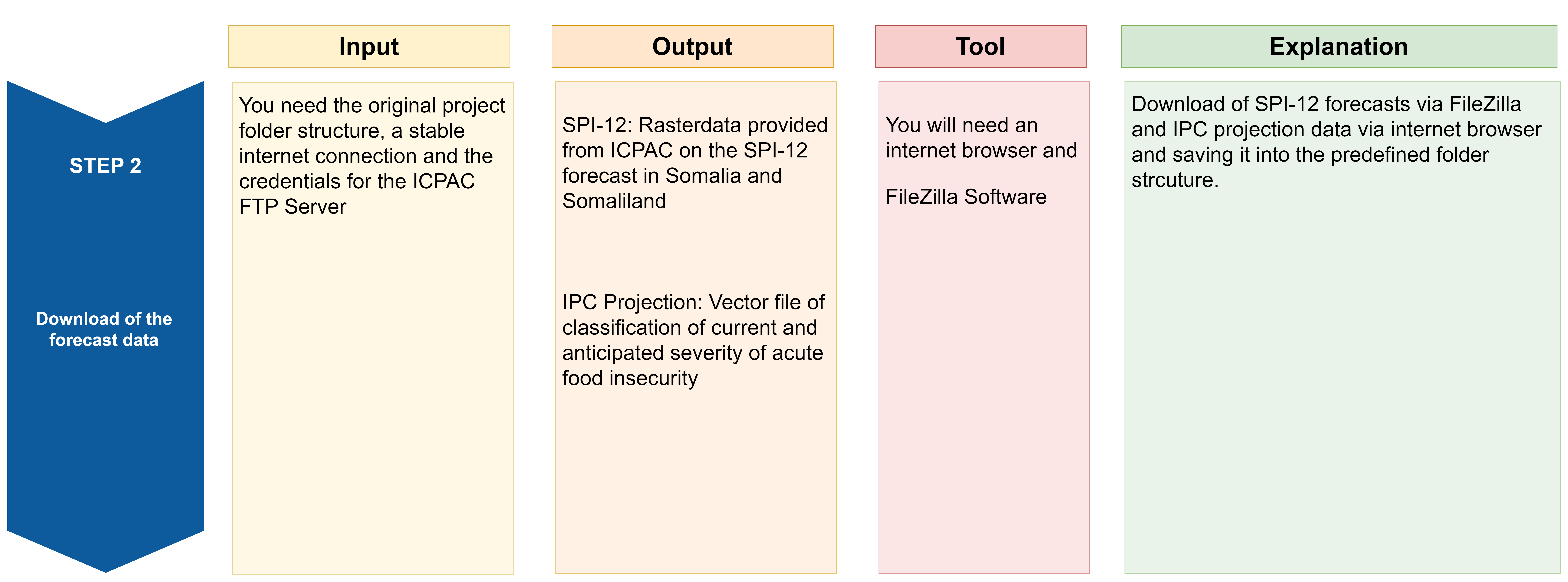 ICPAC will provide the SPI-12 forecasts on their FTP (File Transfer Protocol). There are different ways to access the FTP-Server. We recommend to install and once set up FileZilla. This will make your work easily repeatable on a monthly basis.