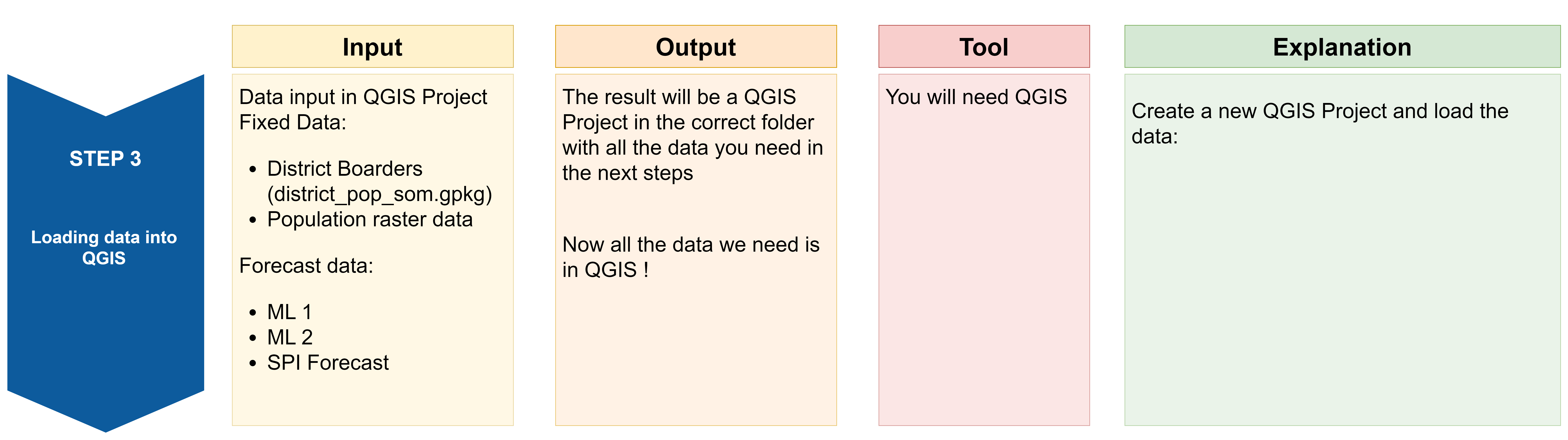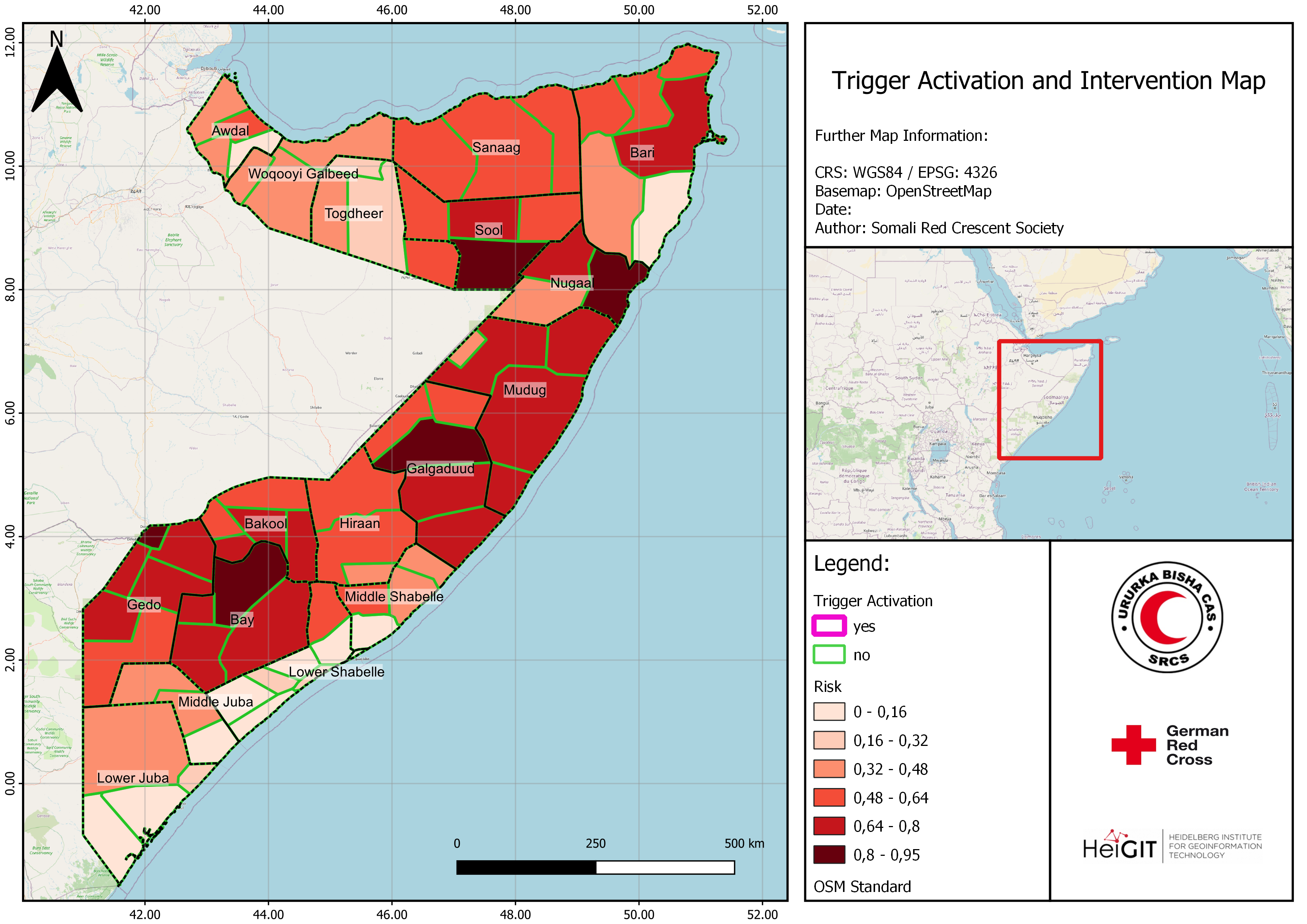 The QGIS workflow presented in this article was developed in the framework of the Forecast-based-Action (FbF) Project of the Somalia Red Cresent Society (SRCS), the German Red Cross (GRC) and the Heidelberg Institute for Geoinformation Technology (HeiGIT).