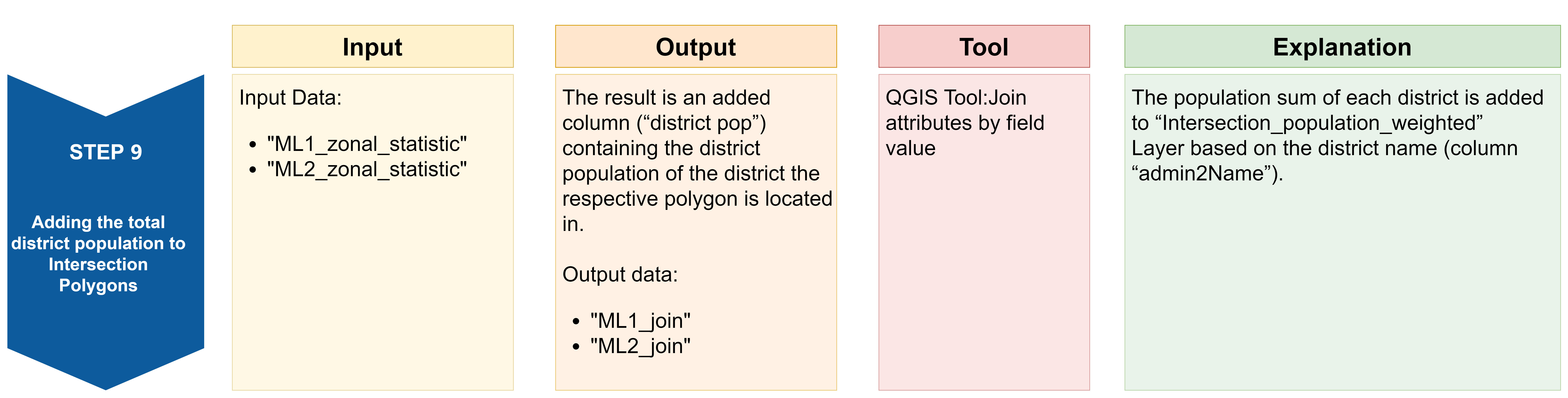Purpose: Now we want to add a column with the total district population to “ML1_zonal_statistic” and “ML2_zonal_statistic”.