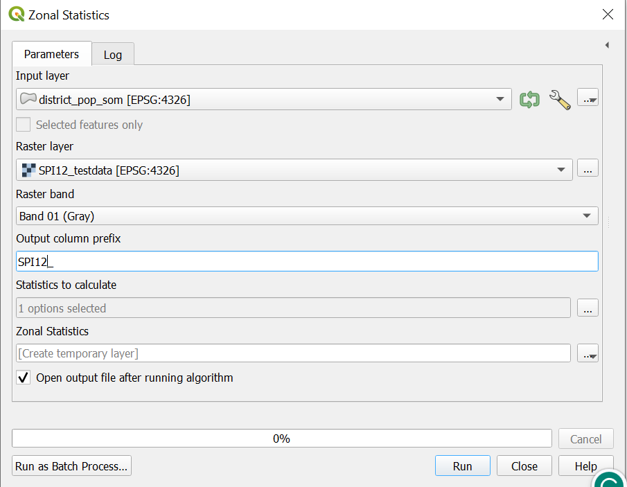 Result: A layer of all districts of Somalia with the mean SPI-12.