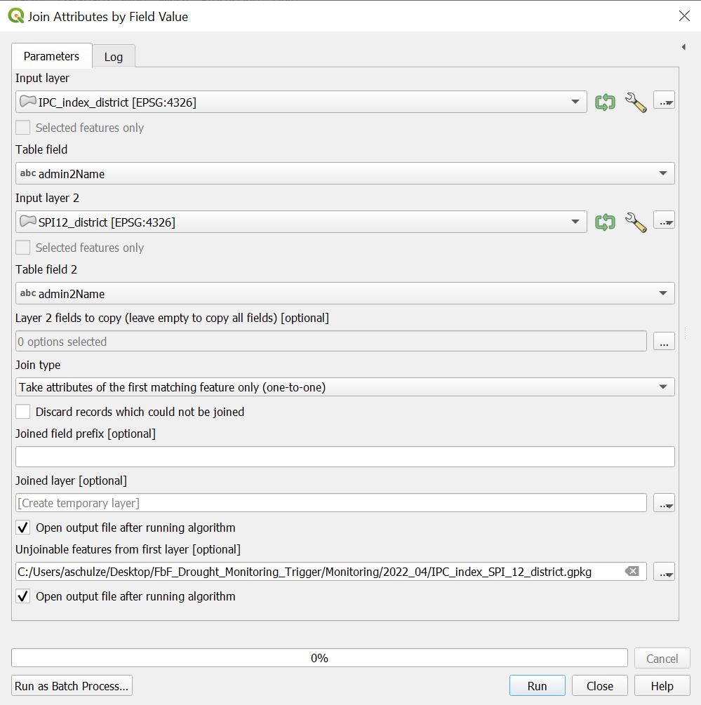 When updating the monitoring, make sure you compare the new input layers with the previous input layers. It can happen that the data structure from FEWSNET or ICPAC changes. For example, the attribute columns are called differently, or the values for the classes change. In these cases, the model can break and output error messages.