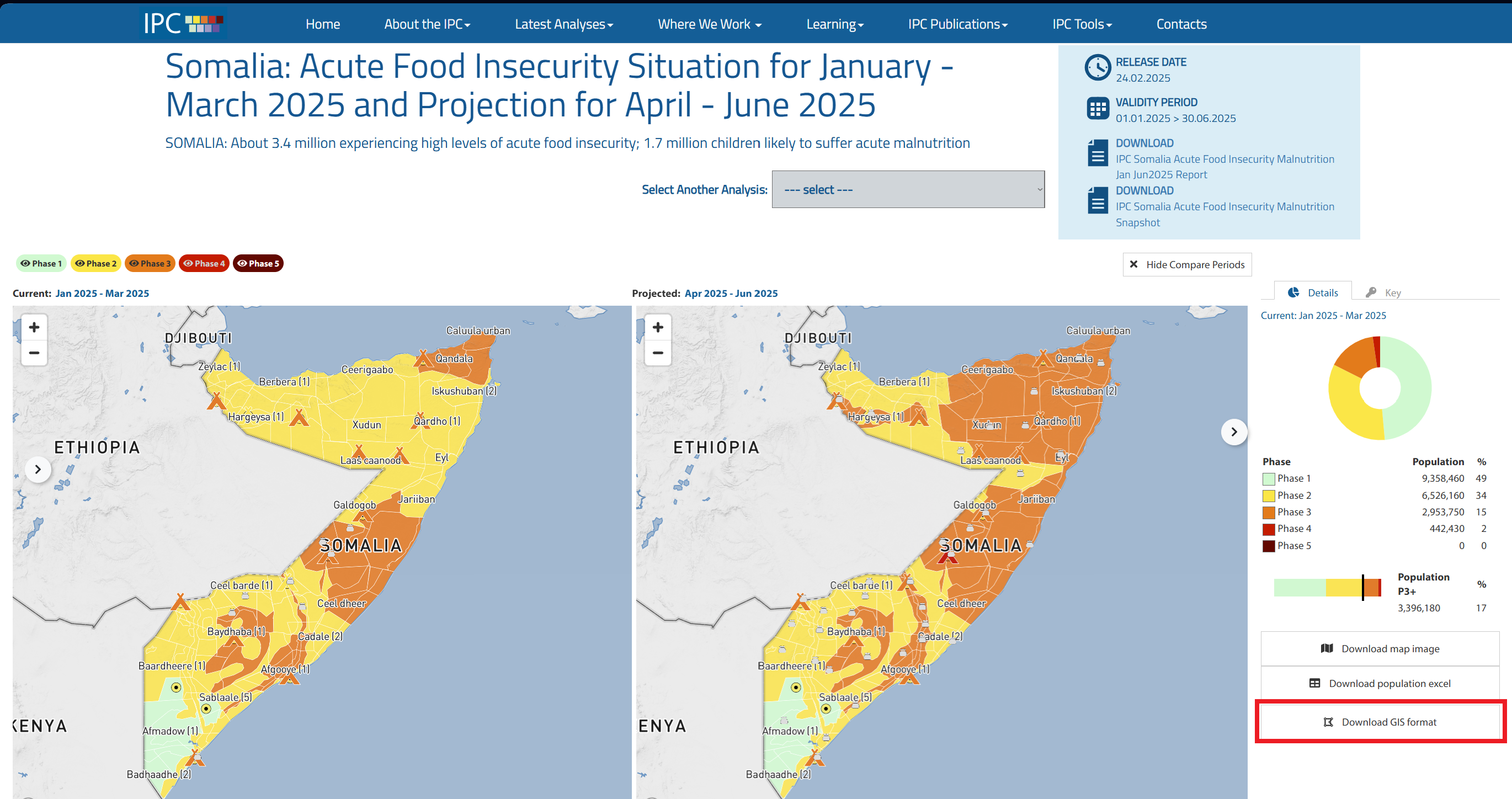 Latest Analyses>IPC Analyses>Acute Food Insecurity Classification.On the new website, select Somalia as a country and select the newest dataset.