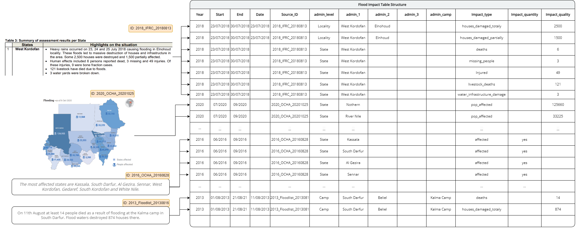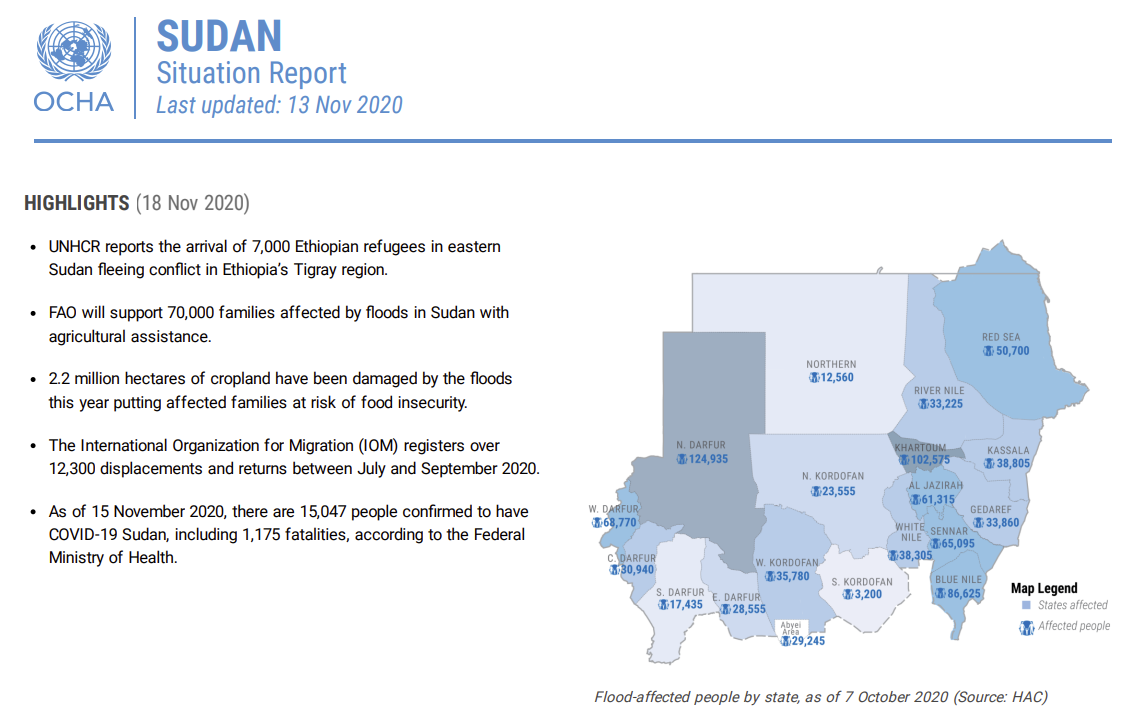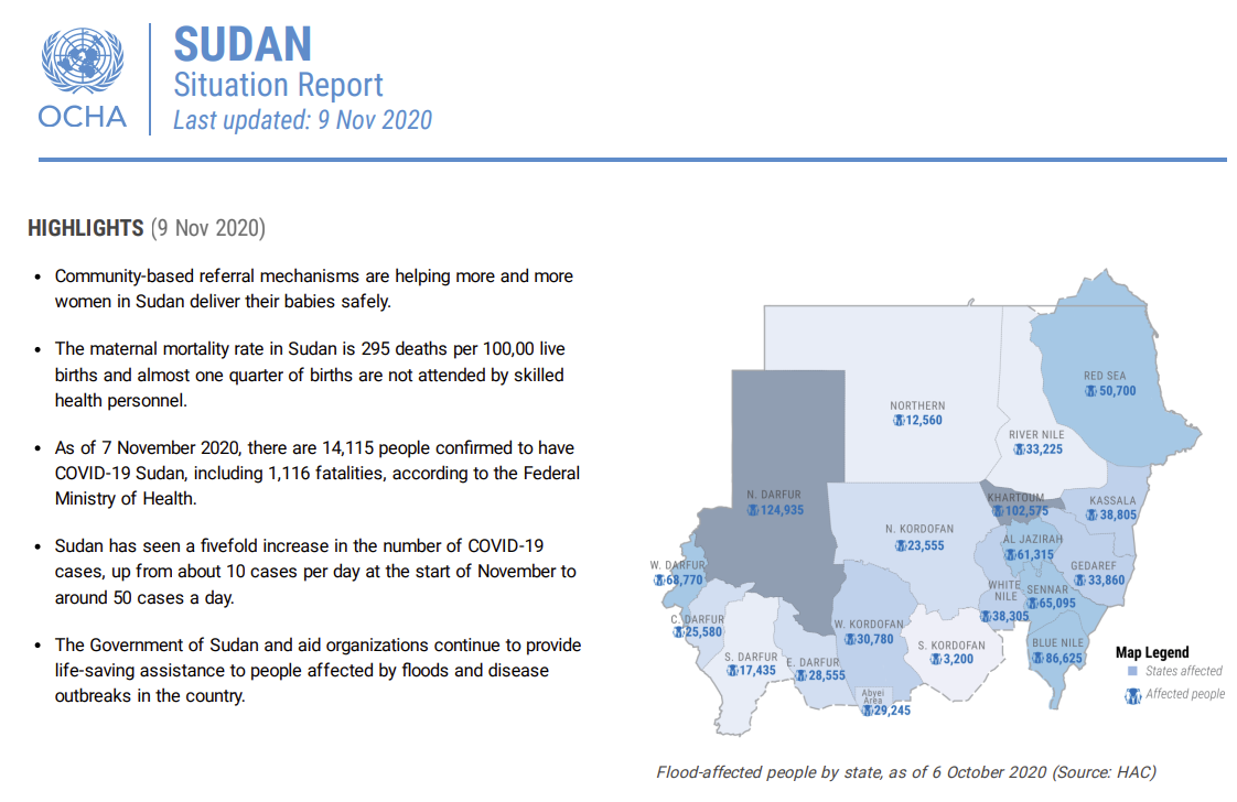 The one BIG challenge in this case was that there are no good datasets on flood impacts in Sudan. Practically, all information is scattered across a huge number of reports, maps, tables, dashboards and newspaper articles. Such documents can be found for example on ReliefWeb.