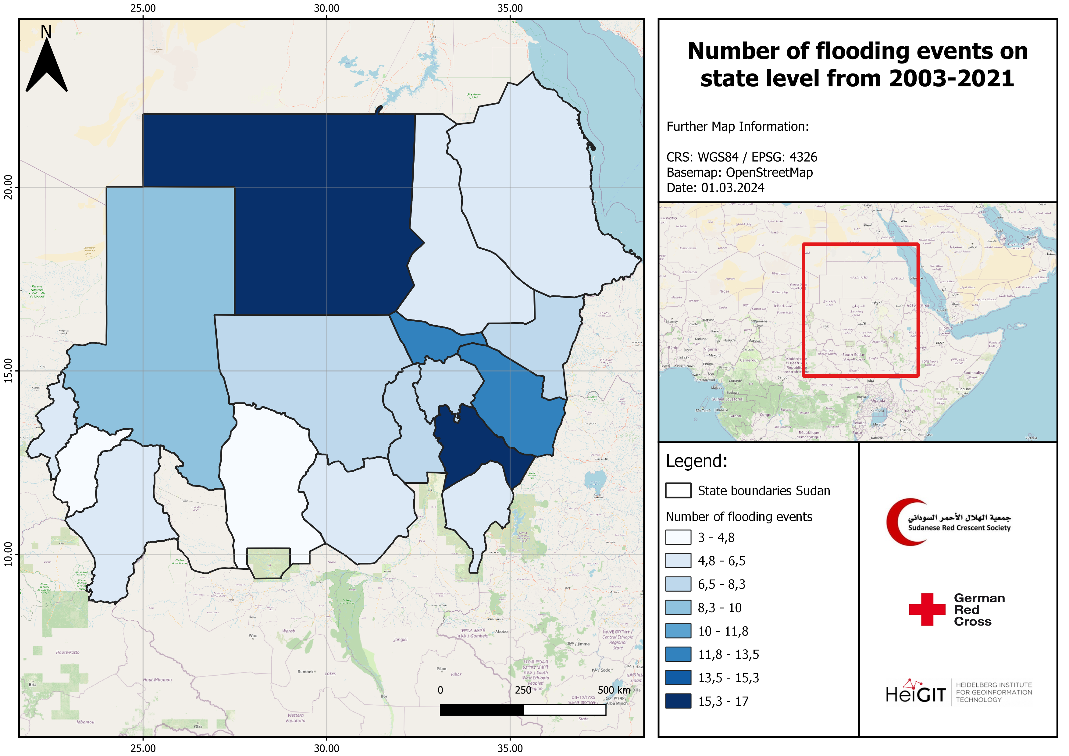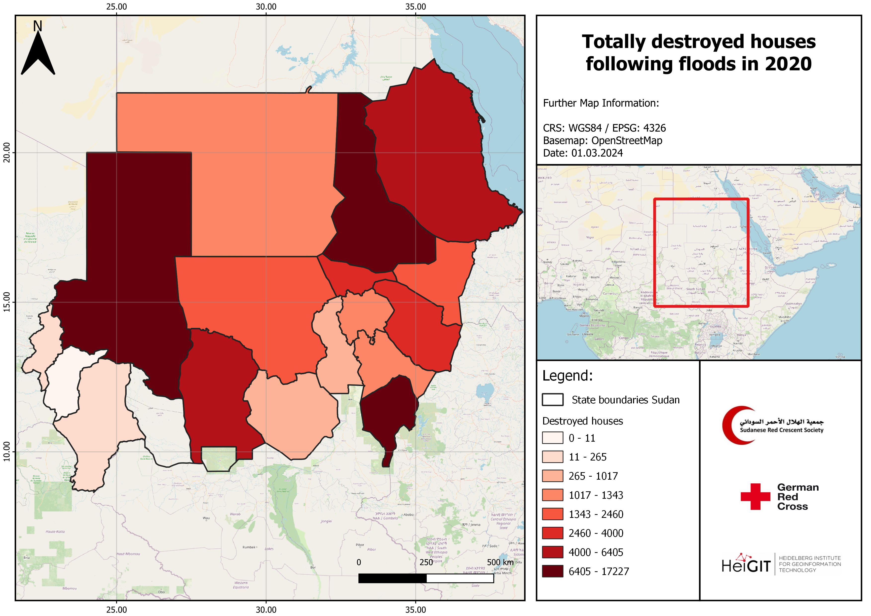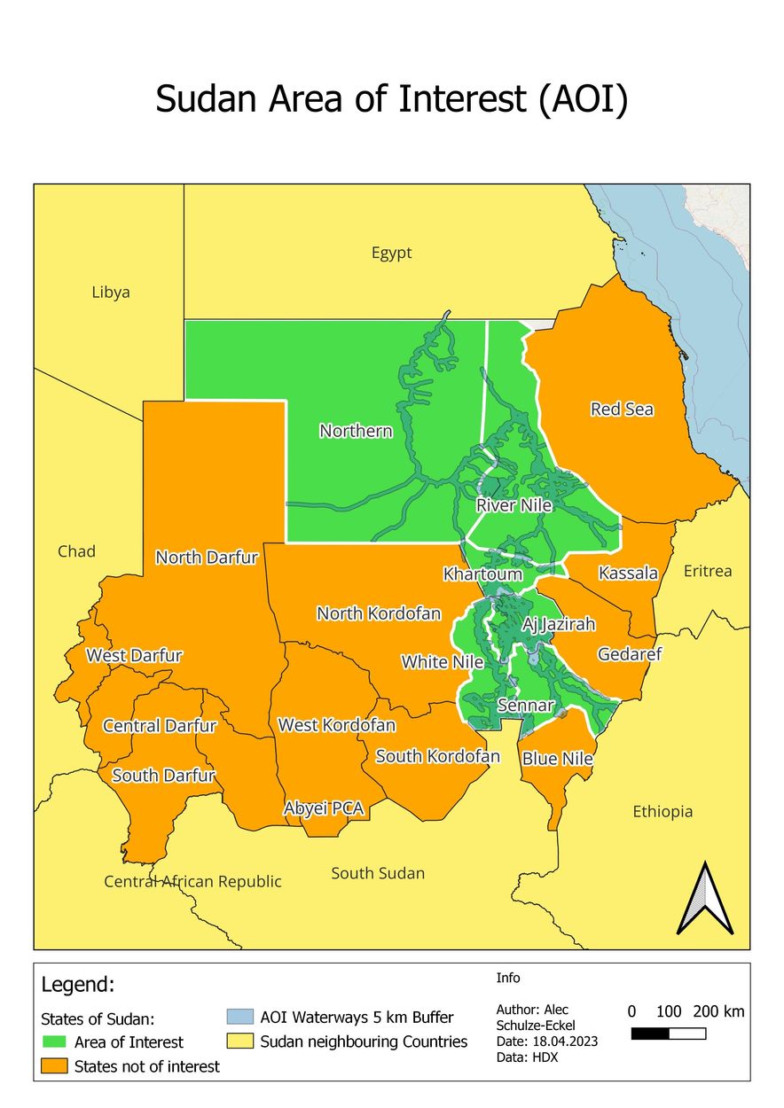 The Area of Interest (AOI) for the HeiGIT team was formally limited to Khartoum, Northern, White Nile and Sennar. However, the analysis and data collection were conducted for all states of Sudan.