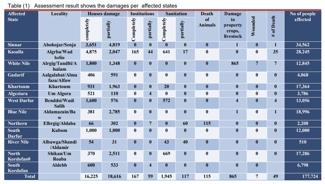 Flood events in Sudanese states for all the recorded years#