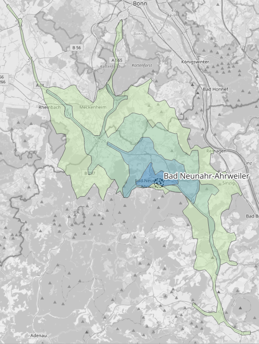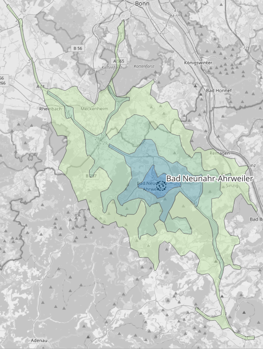 Multiple isochrones for Bad Neuenahr-Ahrweiler without avoid areas#
