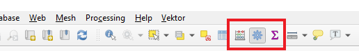 Barras de herramientas: Las barras de herramientas son atajos para ejecutar comandos de uso frecuente. Por ejemplo, hay barras de herramientas especiales para archivos vectoriales y archivos ráster, pero también, otras generales para guardar el proyecto, etc. La barra de herramientas contiene, entre otras cosas, una lista de todos los comandos, que puedes utilizar. La barra de herramientas también contiene la caja de herramientas de procesos, que se utiliza, más adelante, en muchos de los videos de la Wiki.