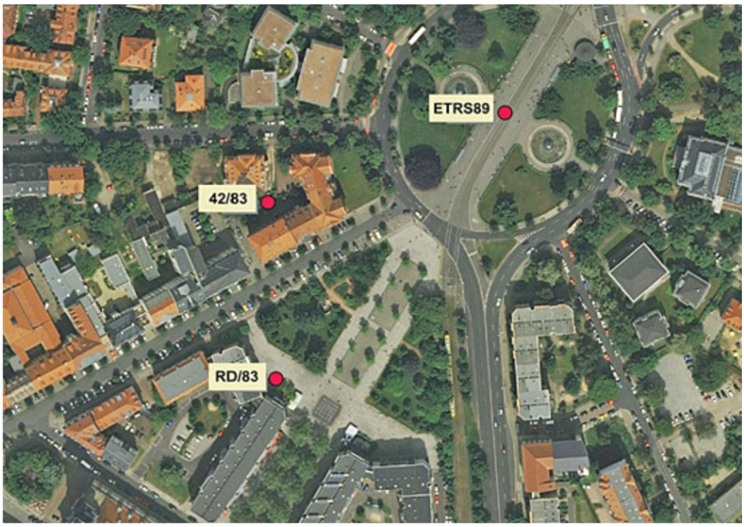 Fig. 2.20 El mismo punto en tres sistemas de referencia diferentes (fuente: HeiGIT).#
