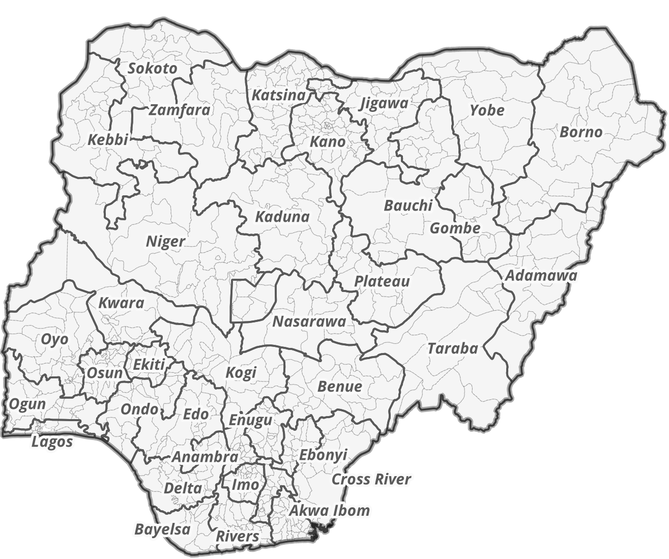 Fig. 4.31 Etiquetas simples para cada región administrativa (adm1) de Nigeria. El lector puede asignar cada etiqueta a la entidad administrativa correspondiente.#