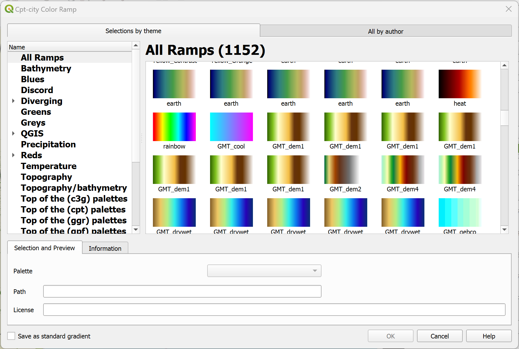 Fig. 4.44 El catálogo de rampas de colores cpt-city en QGIS 3.36#
