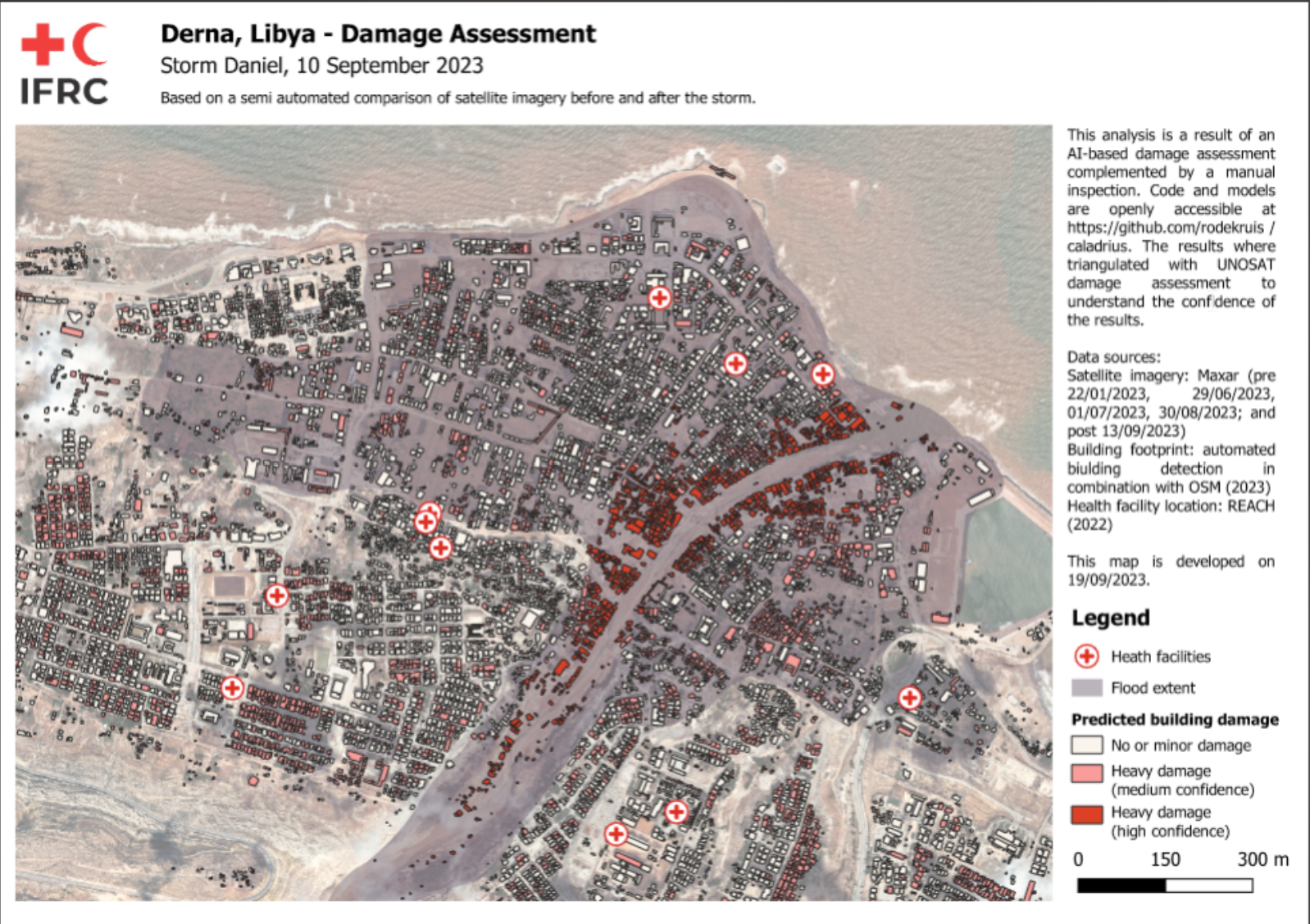 Buscar zonas en las que la infraestructura dañada se superponga con poblaciones vulnerables |