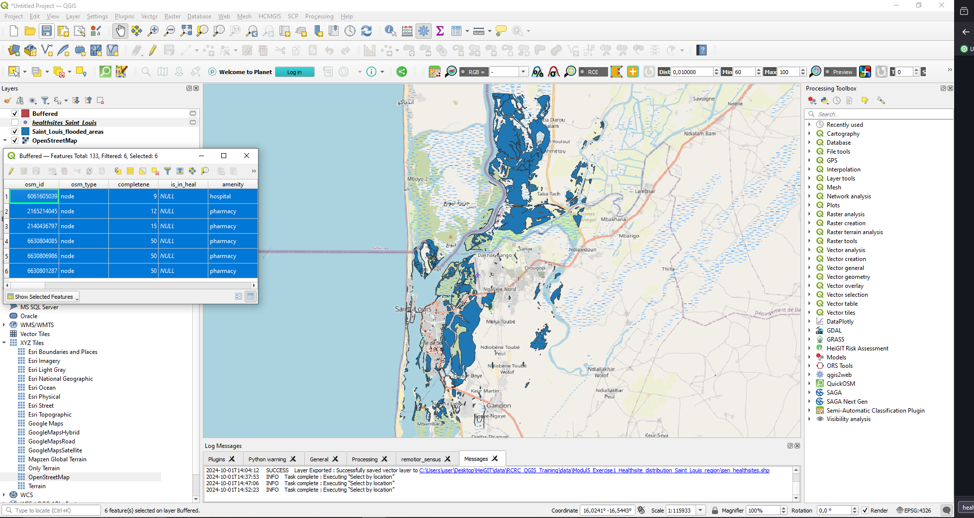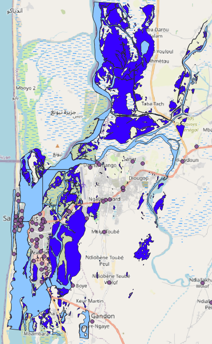 El objetivo de este ejercicio será evaluar la distribución de los centros de salud en la región de Saint Louis, en Senegal, y determinar qué centros de salud son propensos a las inundaciones.