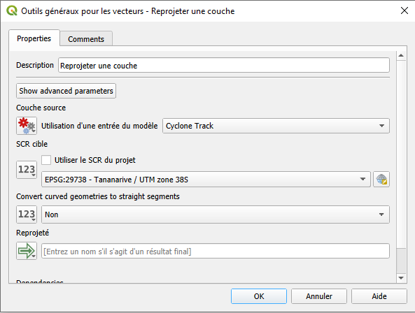 EPSG:29738 – Madagascar / Laborde Grid.Configure la salida como Salida del modelo (deje el nombre de la salida en blanco ).