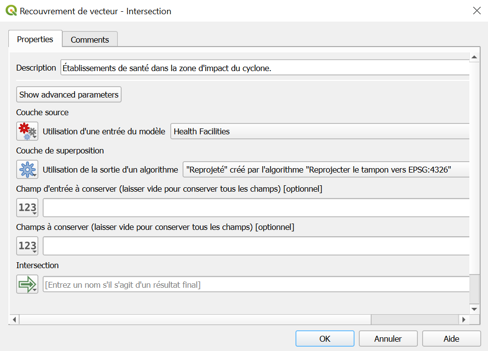 Configuration des paramètres pour exécuter le modèle de la tâche 3 avec toutes les couches d’entrée requises.#