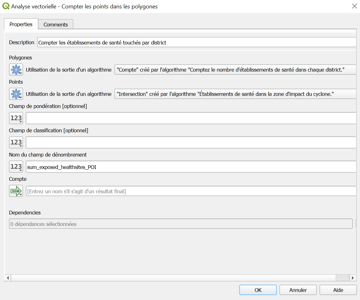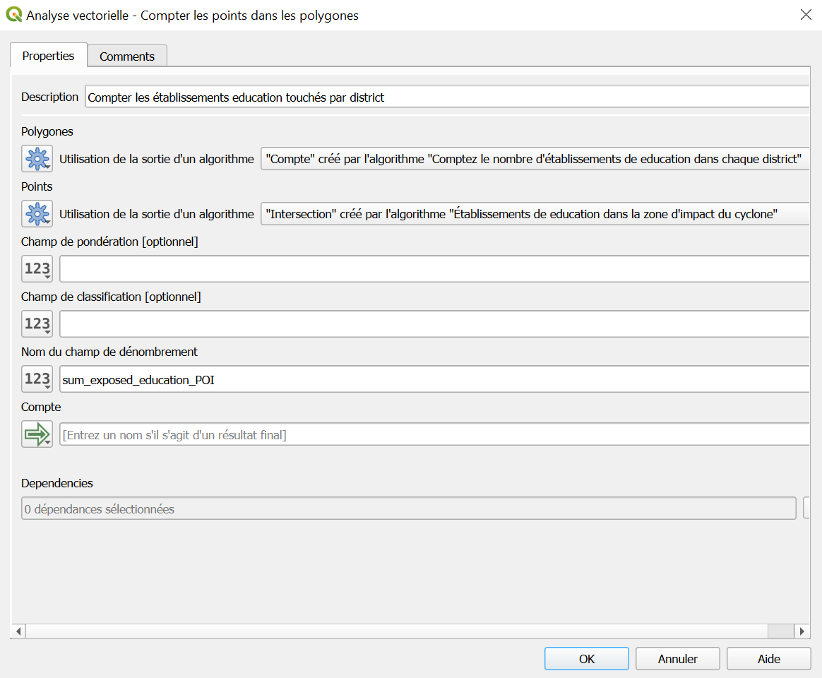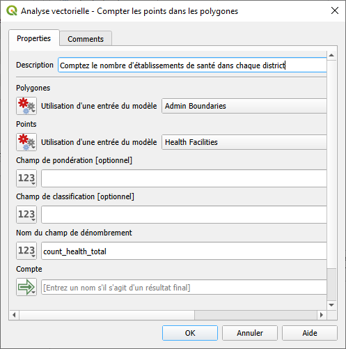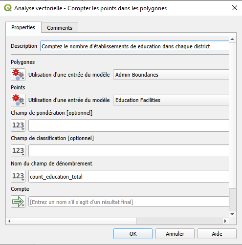 En el panel Algoritmos, busque Contar puntos en polígono.