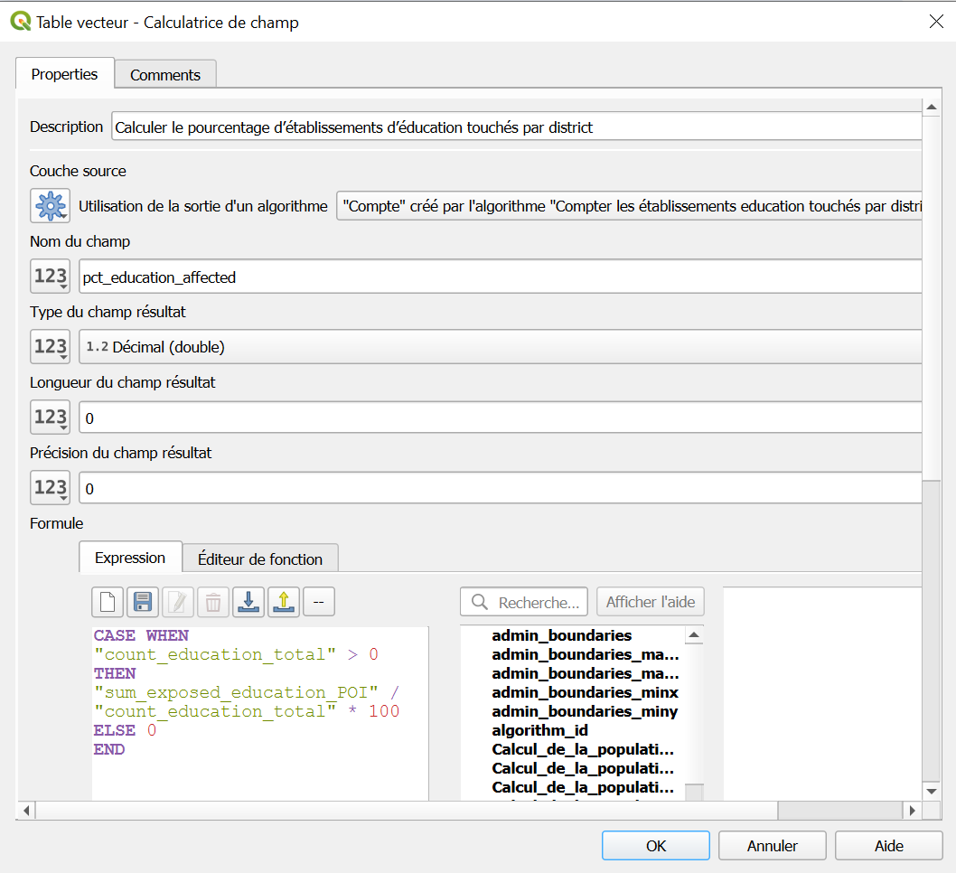 Configuration de l’opération : calculer le pourcentage d’établissements d’éducation touchés par district.#