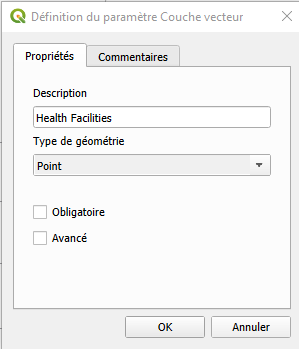 Definir una nueva entrada del modelo: capa vectorial de puntos que representa los centros de salud#
