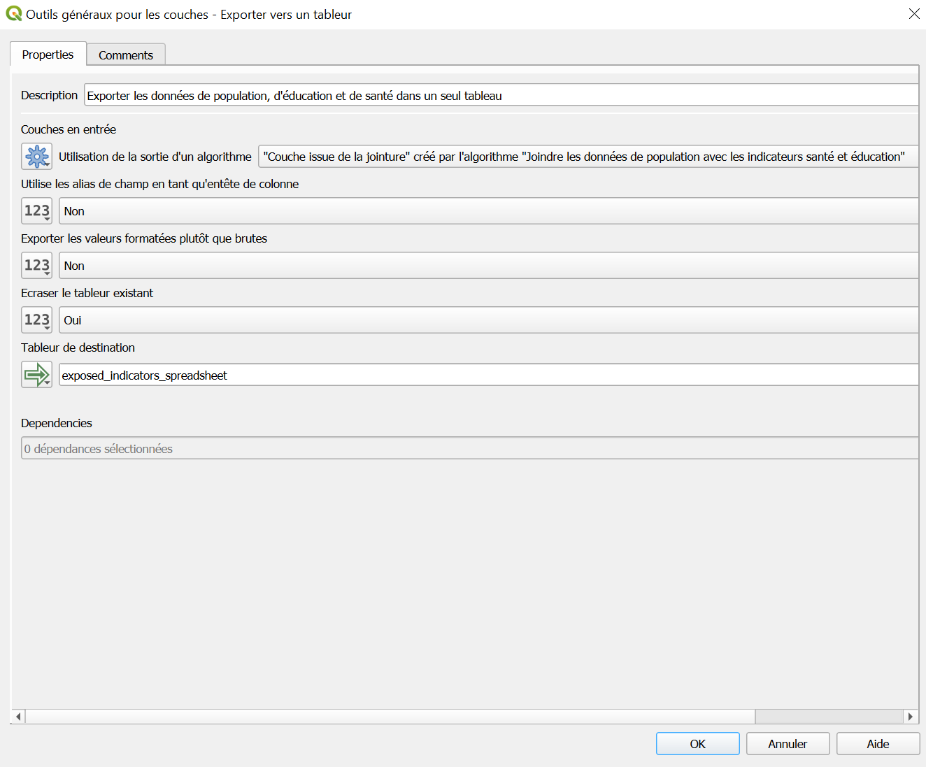 Si la capa resultante no contiene estas columnas, o las columnas están vacías, abra los algoritmos individuales en su modelo y verifique cómo ha nombrado las columnas. También se pueden encontrar en las tablas de atributos de las salidas del modelo.