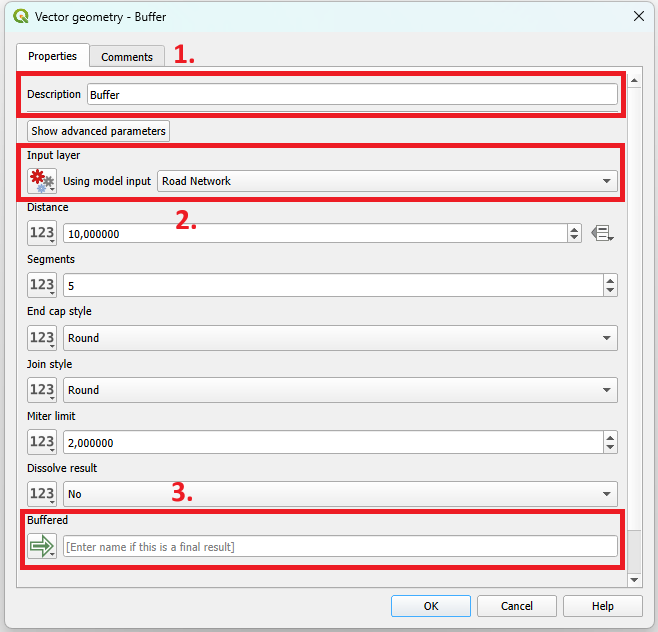 Fig. 17 Página de parámetros del algoritmo “buffer” en el diseñador de modelos#