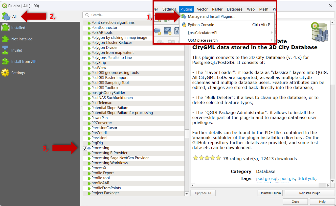 Processing ToolsenPlugins>Manage and install Plugins.Seleccione