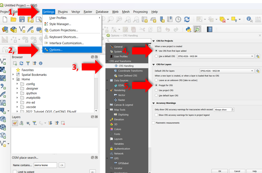 CRS for projectsactiveUse CRS from first layer added.Y en
