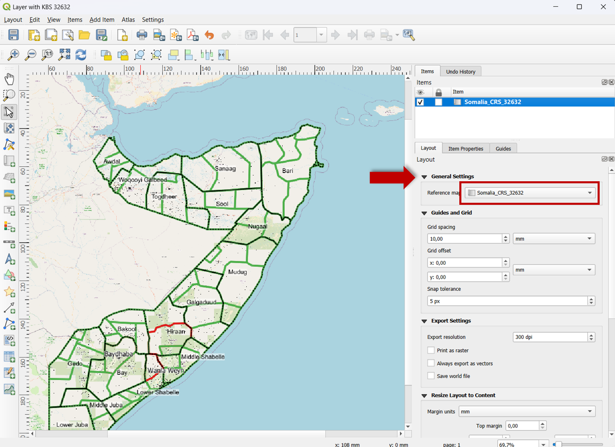 En la pestaña Layout Tab (del diseño de impresión) para la imagen del mapa en General Settings asegúrese de que el mapa de referencia tiene seleccionado el mapa correcto.
