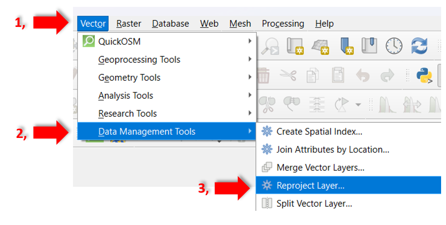 Fig. 47 Herramienta para reproyectar capas en QGIS.#