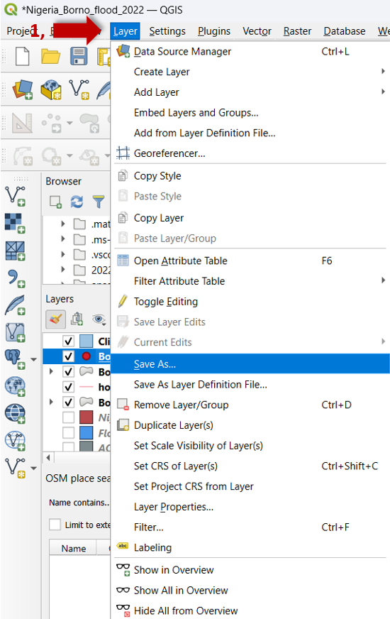 Project: abra el proyecto de QGIS en el que desea redefinir el sistema de coordenadas.Acceda a