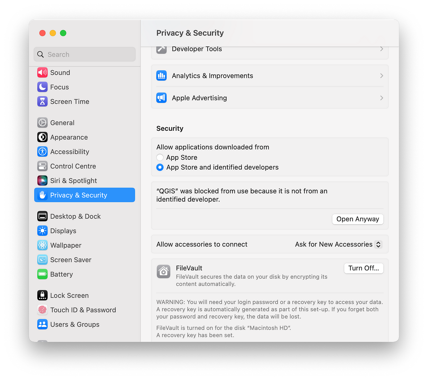 Si este problema persiste, puede cambiar la configuración de su dispositivo. Vaya a Settings > Security & Privacy y desplácese hacia abajo, haga clic en Open Anyway