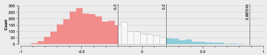 Histogram->Load Values. Ahora puede ver la distribución exacta de los valores entre las clases. Esto resulta muy práctico para decidir un método de clasificación. También puede comprobar el valor medio y la desviación estándar.