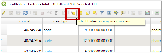 Haga clic en la tabla de atributos para seleccionar manualmente las entidades.